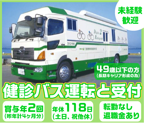 仕事内容 ――■□―――――――――――――――― 正社員を目指したいあなたへ 【一般財団法人 医療情報健康財団】 健診バスの運転&受付スタッフ募集! ――――――――――――――――□■―― ⭐賞与年2回(昨年度計4ヶ月分) ⭐年間休日118日(土日、祝他休み) ⭐転勤はなく腰を据えて長く働けます ⭐退職金もあります ⭐景気に左右されにくい安定した職場 「運転するのが好き」 「人と話すのが好き」 その気持ちがあればOK! 医療の専門知識がなくても大丈夫。 しっかりした研修があるので、 未経験からでも安心してスタートできます! ―――――――――――――――――――― 【お仕事内容】 地域の健康診断をサポートするお仕事です。 ✅健診バスの運転 福岡県内を中心に、 健診会場まで運転します。 ※月5日ほどは、九州・山口・広島方面 への出張もあり(宿泊あり) ✅健診会場での受付・計測補助 来場者の受付や、身長・体重の計測など、 シンプルな作業が中心です。 ✅医療スタッフとの連携・サポート 分からないことがあっても 周りに聞ける環境です! ―――――――――――――――――――― 【こんな方におすすめ】 ✔ ドライブや運転が好きな方 ✔ 人と接することが好きな方 ✔ 安定した仕事を探している方 ✔ 社会や地域の役に立つ仕事がしたい方 ✔ 時間を守り、柔軟にお仕事に取り組める方 ―――――――――――――――――――― 気になった方は、 まずはお気軽にご応募ください♪ あなたの「はじめの一歩」を 私たちがしっかりサポートします! 【当財団のHPも是非ご覧ください】 https://www.kenko-zaidan.or.jp/