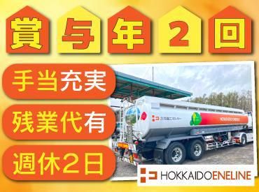 仕事内容 / 大型免許があれば大歓迎!面接1回でスムーズに転職可能! 長距離配送無し×手積み・手降ろしナシで負担も少なめです! \ ENEOSの運営などエネルギー事業を行う「北海道エネルギー株式会社」のグループ企業『北海道エネライン株式会社』で、大型タンクローリードライバーを大募集! 北海道での生活に絶対に欠かせないガソリンや灯油の配送を担う物流企業のため、非常に高い需要と安定性を誇っています。 <この求人のポイント!> [1]面接1回のみ>応募から面接、内定までスピーディーに対応します! [2]学歴/経験/転職回数不問>完全未経験から入社した先輩も多数活躍中! [3]賞与年2回(前年実績3~4ヶ月分)有>他にも燃料・住宅・養育支援手当など豊富な各種手当をご用意! [4]年間休日110日>週休2日(月9日~10日休)で休みも充実!有給休暇もあり! [5]転勤無し>転居を伴う転勤が無いため、住み慣れた街で働けます! [6]福利厚生・各種手当も充実しています! 【お任せするお仕事内容は・・・】 大型タンクローリーを運転して札幌近郊の「ENEOS」のガソリンスタンドへ、ガソリンを輸送する仕事です。 難しい業務は無く、丁寧な研修もあるので、大型車の乗務経験が浅い方はもちろん、タンクローリーを運転するのが初めての方も安心です! >再配達など面倒なことは無し! 個人宅や企業を訪問する仕事では無く、グループ企業が運営するガソリンスタンドを回るため、目的地に到着次第、作業が進められます。 そのため、再配達はもちろん、お客様対応によるトラブルなども一切無し!運転と自分の作業に集中できるお仕事です。