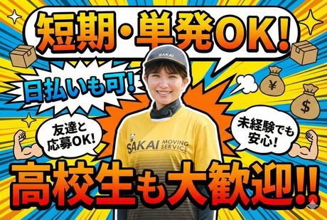 仕事内容 お客様が新しい生活を気持ちよく始められるようにお手伝いするアシスタントの仕事です 「ありがとう」の言葉を直接いただける、 やりがいのあるお仕事です。 学校やWワークとの両立もできる柔軟な働き方で、 チームで協力しながら安心して働けます。 2~5名のチームで協力し合い、 お客様の新居でのスタートをサポートします。 【主なお仕事】 ・正社員スタッフのサポート業務 ・ダンボールや小型家具の整理・配置 ・新居での荷物整理やセッティングのお手伝い ・台車を使った荷物の移動サポート ・トラックやエレベーター前での案内・フォロー ★未経験でも安心 まずは支社での研修からスタート。 現場では先輩スタッフが丁寧にフォローします。 笑顔での対応が何より大切なお仕事です。 ★初日は研修からスタート 支社で動画+実技研修(2~3時間/給与支給) 道具の使い方や段ボールの作り方も学べます 翌日から現場で勤務スタート可能! さらに「職場見学」もOK!休憩室やトラック見学など、 不安がある方も安心して応募できます。 先輩がしっかりサポート 現場には20代中心の若手スタッフが多く、初めての方にも慣れた先輩が丁寧にフォロー。 不安なことや困ったことがあれば、すぐに聞ける・頼れる環境が整っています。 【先輩スタッフの声】(一部抜粋) 「お客様に『助かりました!』と笑顔で言ってもらえた時にやりがいを感じます」 「接客の経験を積みながら、チームワークも学べるのが魅力です」 「研修と現場のサポートで安心して始められました」 勤務スタイルも柔軟です *土日だけ/週1日~OK *午前のみ・午後のみなど短時間OK(16歳・17歳の方は勤務時間最大6時間まで) *フルタイムでしっかり稼ぐことも可能 *シフトは毎日提出OK。予定に合わせて調整できます。 *日払い・週払い(規定あり)にも対応しています。 応募について 面接は1回のみ。履歴書不要。 WEBでも対面でも選べますので、ご都合に合わせてご相談ください。 AI面接対応で24時間いつでも面接可能です! 「まずは短期で試してみたい」「友達と一緒に働きたい」などのご希望も大歓迎です。 安心して始められる環境で、あなたのバイトデビューを応援します!