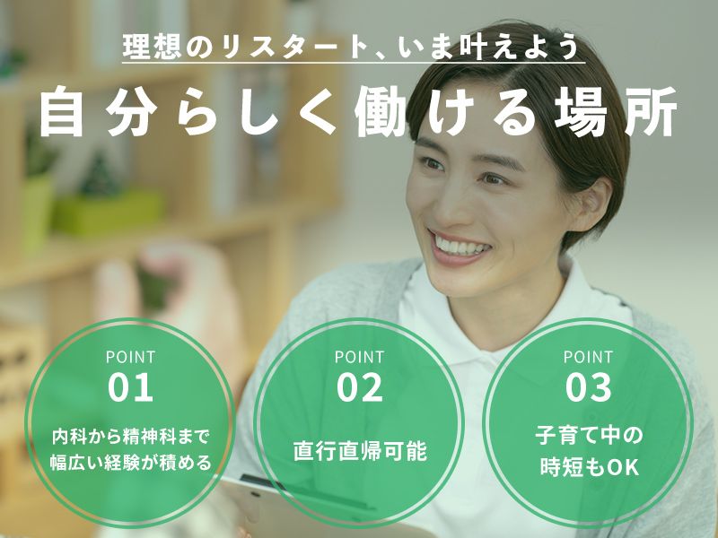 仕事内容 内科から精神科まで 幅広い経験が積める正看護師募集! ママさんも活躍中の職場で 理想のリスタートを叶えよう♪ POINT  ̄ ̄ ̄ ̄ ̄ ̄ ̄ ̄ ̄ ̄ ̄ ̄ ̄ ̄ ̄ ̄ ̄ +代表との距離が近く風通しの良い社風 +設立2年目の新しい施設で柔軟に働ける + シフト制なのでお休みの希望が通りやすい + 直行直帰可能! + 20~50代まで幅広い世代が活躍中 + 子育て中の時短勤務もOKです + 訪問未経験の方でも大丈夫! + 同行研修でしっかりサポートします _________________ 仕事内容 ー 要介護者などの利用者様宅に訪問する 看護師業務をお任せします! ⇒ 訪問範囲は車で30分以内! 主に自家用車で回ります 入社後の流れ ー 経験豊富な先輩スタッフと一緒に、 1ヶ月間、一緒に訪問しながら研修! わからないこともその場で聞けるので 訪問未経験でも安心して始められます♪