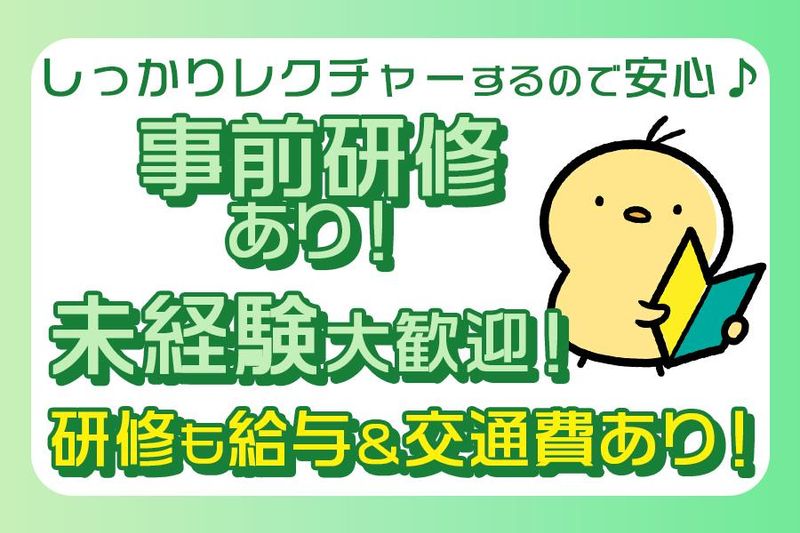 【保険制度】 雇用保険、労災保険、健康保険、厚生年金 待遇・福利厚生 【福利厚生】 ■交通費支給 ■事前研修あり ■単発のお仕事 残業もなく定時ピッタリに終われる♪ 単発でサクッと働ける! お小遣い稼ぎをしたい学生さんや ちょこっと働きたい中高年の方などに 人気のお仕事です◎ お仕事内容もとってもカンタン★ 事前に研修もあるので 未経験の方も安心してスタート+*