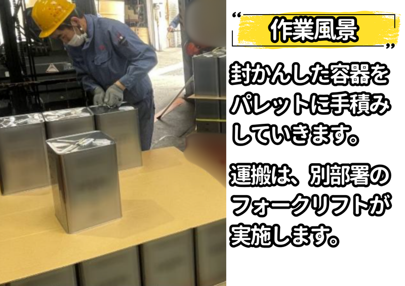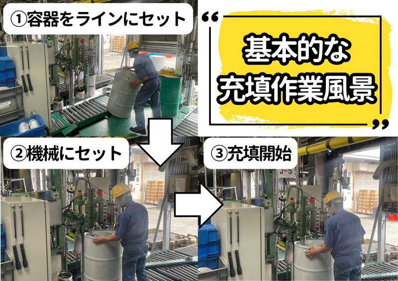 仕事内容 ✨ 未経験から“充填オペレーター”へ!✨ 月給24万円~/賞与3.5か月/日勤17時退勤の安定職 ✅ この求人のポイント!  ̄ ̄ ̄ ̄ ̄ ̄ ̄ ̄ ̄ ̄ ̄ ̄ ̄ ̄ ̄ ̄ ̄ ̄ ̄ ◆ 原則 17時定時退勤 ◆ 残業ほぼなし(月10h以下) ◆ 食事手当800円/住宅・家族・勤続手当あり ◆ 賞与年2回(計3.5ヶ月)+昇給 ◆ 創業70年以上の安定企業 ◆ 転勤なし(川崎勤務) ✅ 仕事内容・作業内容  ̄ ̄ ̄ ̄ ̄ ̄ ̄ ̄ ̄ ̄ ̄ ̄ ̄ ̄ ̄ ̄ ̄ ̄ ̄ 【仕事内容】 自動車・産業機械向けの潤滑油を、 ドラム缶・ペール缶に充填する製造作業(充填オペレーター)です。 空のドラム缶を機械にセットし、 機械操作で充填 → 封かんを行う工程を担当します。 経験がなくても丁寧に教えるので、安心してスタートできます。 【作業内容】 ◆ 充填作業 ・空の容器を充填機にセット ・操作盤を押して自動充填(量は機械管理) ◆ ラベル貼り・封かん・パレット積み ・ラベルを貼る ・治具でフタ締め ・中型容器はパレットへ手積み(チーム作業) ◆ 作業記録の記入 ・「充填指図書」に作業内容を記録 ✅ 力仕事は最小限  ̄ ̄ ̄ ̄ ̄ ̄ ̄ ̄ ̄ ̄ ̄ ̄ ̄ ̄ ̄ ̄ ̄ ̄ ̄ ・ドラム缶(22kg)の運搬はフォークリフト担当 ・作業者は転がして”位置調整”を行います ・重い荷物を持ち上げる作業は基本なし → 体への負担が少なく、長く続けやすい仕事です ✅ この仕事の特徴  ̄ ̄ ̄ ̄ ̄ ̄ ̄ ̄ ̄ ̄ ̄ ̄ ̄ ̄ ̄ ̄ ̄ ̄ ̄ ・製造計画に沿って進める安定作業 ・毎日ほぼ同じ流れのルーティーンワーク ・落ち着いて作業できる ・正確さを大切にできる方が活躍 ✅1日の流れ  ̄ ̄ ̄ ̄ ̄ ̄ ̄ ̄ ̄ ̄ ̄ ̄ ̄ ̄ ̄ ̄ ̄ ̄ ̄ 07:45 出勤・着替え・タイムカード 08:00 朝礼(作業内容や注意点を確認) 08:15 作業開始(最初は簡単作業から) 10:00 小休憩(5~10分) 11:50 午前作業終了・片付け 12:00 昼休憩(45分) 12:45 午後の作業スタート 15:00 午後休憩(15分) 16:30 作業終了・片付け・翌日の準備 17:00 退勤 こまめに休憩があり、無理なく働けます。 ✅職場環境・会社について  ̄ ̄ ̄ ̄ ̄ ̄ ̄ ̄ ̄ ̄ ̄ ̄ ̄ ̄ ̄ ̄ ̄ ̄ ̄ ◆ 当社について ・ 創業70年以上の潤滑油メーカー ・ 自動車・産業機器向けの潤滑油を製造 ・ 川崎・浮島の1工場のみ(転勤なし) ・ 地元密着で、品質を第一に安定した供給を継続 ・ 未経験者の育成に力を入れ、定着率の高い職場 ◆ 募集部署について ┗ 充填オペレーターは約13名在籍(30代・40代・50代の男性中心) ┗ 落ち着いた雰囲気のチームで、モクモク作業がしやすい ┗ 作業は原則として工場建屋内で行います(天候の影響なし) ┗ 季節に合わせて装備を支給 夏:ファンベスト支給 冬:防寒着支給 その他:スポットクーラー・季節対策備品あり ↓こちらからホームページ確認できます!↓ https://kowayuka.co.jp/