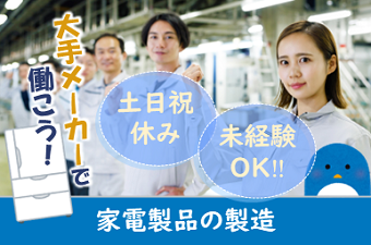 大手メーカー家電製造☆未経験者歓迎!【電車通勤可能】大平駅より徒歩5分!【日勤】×【土日祝休み】でライフワークバランスも取りやすい◎