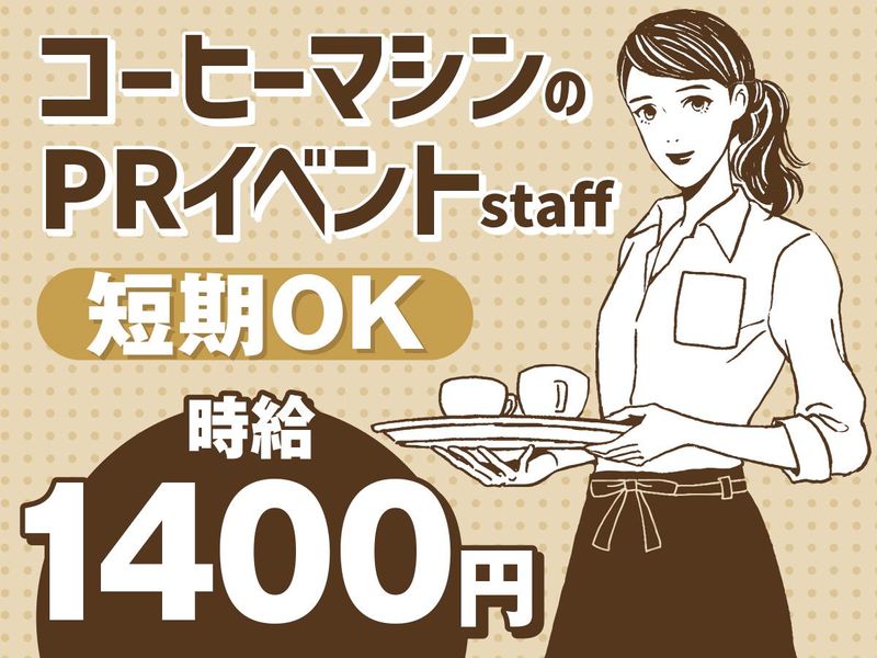 仕事内容 ▒▒▒▒▒▒▒▒▒▒▒▒▒▒▒▒▒▒ \大人気★コーヒーメーカーのご紹介/ ✨未経験・経験問わず大歓迎です✨ ▒▒▒▒▒▒▒▒▒▒▒▒▒▒▒▒▒▒ ♪/)_/) /)_/) ★短期もOK✨❗ (。・ω・)*・∞・) 希望期間など相談下さい ⭐週2日~OK◎プライベートも充実☕ ⭐Wワーク・副業も大歓迎❗ ⭐平日のみ・土日のみもOKです☘ ◤ ̄ ̄ ̄ ̄ ̄ ̄ ̄ ̄ ̄ ̄ ̄ ̄ ̄ ̄ ̄ ̄ ̄◥ 商業施設や健康センターなどで 新型コーヒーマシンのイベント実施☕ ご来店されたお客様へ商品を おすすめしていただくお仕事です☘ ◣_________________◢ ▶具体的なお仕事内容は…✨ ✅接客 ✅試飲の提供 (紙コップに注いでお客様にお渡し) ✅コーヒーマシンの紹介 ✅契約のサポート など! *知識・経験は一切不問❗ 実際に働く前にわかりやすい 研修があるので安心です◎ *主婦(夫)さん・学生・フリーターなど活躍中! ◌◍┈┈┈┈┈┈┈┈┈┈┈┈┈┈┈⿻*.· ╭━━━━━━━━━╮ ✨メリットたくさん✨ ╰━━━━v━━━━╯ ①お友達紹介制度あり⭐ ════════════ お仕事を紹介した方も、された方も お互いに紹介金がもらえる嬉しい制度✨ *紹介者…………1万円☘ *紹介された方…5000円☘ ②稼働分前払い制度あり⭐ ═════════════ 働いた分のお給料は前払い可能! 「今月支払いがピンチ」 「限定商品が欲しい」 「給料日前に家電が壊れた」など 様々なシーンで大活躍です♪ ③昇給あり❗⭐ ════════ 頑張りはしっかり評価! 長く働いているスタッフの モチベーションにもつながっています◎ ④シフト自由❗⭐ ═════════ 週2日~OK!平日のみ・土日のみ 短期・長期・副業・Wワークも、 まずはあなたの希望の働き方を ご相談ください(●'艸'●) ⑤駅チカで通勤ラクラク⭐ ═════════════ 駅から徒歩圏内だから通勤も楽ちん♪ 交通費も支給されるので安心◎