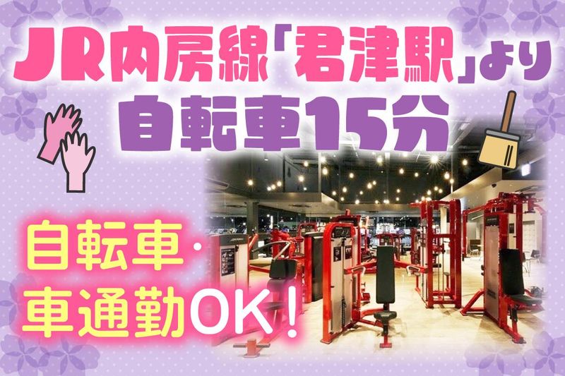 職場環境 【FitZone24 八重原本店】 千葉県君津市南子安9-2-22 JR内房線「君津駅」より自転車15分 ★車通勤・自転車通勤OK ★お近くにお住まいの方も大歓迎 青砥駅、巌根駅、姉ヶ崎関、 木更津駅、長浦駅、袖ヶ浦駅 などからもアクセス便利です♪