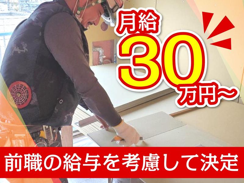 仕事内容 【入社2年目で年収500万超えも可能!】 現場職の経験を活かして収入アップ!新築工事をメインに行う内装工事スタッフを募集いたします。 \スタッフの9割が中途入社です/ 月給30万円から、資格取得やスキルアップによって随時昇給✨ 収入面だけでなく、資格取得支援に力を入れている環境、自分の意見が堂々と伝えられる会社の雰囲気に魅力を感じ、転職してきたスタッフが多いです。 ―――――――――――――――――― \具体的な仕事内容/ ●鋼製下地(LGS) ●ボード工事 ●GL工事 ●室内装飾工事(床張り・クロス張り) ●内装仕上げ工事 など 新築工事:改修工事=8:2の割合で担当。 公共施設やマンションなどの施設工事がメイン!有名人のご自宅の施工実績もあり、様々な活躍の場があります。 多能工として、幅広い経験・スキルが身につきます。 1現場につき、3~4名のチームで行動。 工期は最短で2~3日、長期的な施工は約半年ほどかけて行います。 ゆとりをもった納期でご依頼を請けているので、急かされることなく、細部までこだわる施工ができますよ! 自社に施工管理者が常駐しており、現場の意見もスムーズに反映◎ ―――――――――――――――――― ✅前職から年収大幅UPした社員も!  ̄ ̄ ̄ ̄ ̄ ̄ ̄ ̄ ̄ ̄ ̄ ̄ ̄ ̄ ̄ ̄ ̄ 技術を磨きながら大幅な収入UPが可能!前職から約200~300万円ほど年収が上がったスタッフもいます✨ ✅資格取得支援でスキルアップを応援  ̄ ̄ ̄ ̄ ̄ ̄ ̄ ̄ ̄ ̄ ̄ ̄ ̄ ̄ ̄ ̄ ̄ ̄ 資格保持者しか入れない現場などもあるので、資格を取得した方には随時昇給で還元いたします。 スキルを活かして施工管理へのキャリアチェンジや、後輩を育てる教育担当を目指すことも可能です。 ✅交流を大切にする社風です  ̄ ̄ ̄ ̄ ̄ ̄ ̄ ̄ ̄ ̄ ̄ ̄ ̄ ̄ 若手が中心に活躍しており、会社の平均年齢は30代! フランクなスタッフが多く、休憩中にプライベートで盛り上がっている様子もよく見られますよ。