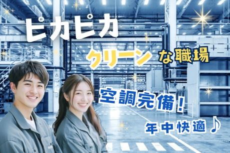 \工場デビュー歓迎/2024年稼働のキレイな工場です☆空調完備で快適!軽作業スタッフ募集