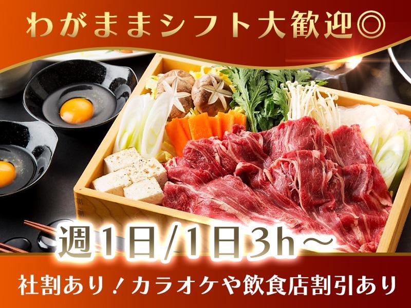 仕事内容 ˚✧₊⁎ お仕事の特徴⁎⁺˳✧༚ ◎週1日OK!柔軟なシフト体制! ◎カラオケ店50%割引など嬉しい特典あり! 繁忙期には嬉しい特典あり♪ 出勤日数に応じて食事券プレゼント! 昨年は年末年始の繁忙期中の出勤で 最大1万4千円の食事券の贈呈実績あり! 頑張りをしっかり還元しています! 【仕事内容】 居酒屋のホールスタッフのお仕事をお願いします! マニュアルもあって簡単ですよ♪ 具体的には… ・お客さまのご案内 ・お料理/ドリンクの提供 ・席の片付け ・お会計対応 etc… □■――アピールポイント――■□  ̄ ̄ ̄ ̄ ̄ ̄ ̄ ̄ ̄ ̄ ̄ ̄ ̄ ̄ ̄ ̄ *【POINT 1】わがままなシフト大歓迎。* 主婦(主夫)を頑張りながらや、学業との両立も簡単! Wワークで夢を追いながら働く人も歓迎です! *【POINT 2】仲間やお友達と楽しくバイトOK* 1人紹介で最大3万円(店舗により異なる)の友人紹介制度もあるので お友達と一緒にスタート!なんてこともOK◎ *【POINT 3】落ち着いたメンバーとのお仕事* 大学生や主婦(主夫)、高校生も活躍している現場です。 落ち着いた雰囲気で和やかに仕事したいという方には ぴったりな職場かもしれませんよ! \従業員に聞いたオススメポイント!/ いい人が多く本当にアットホーム♪ 友達と使える福利厚生が嬉しいです! 他のバイトと調整がしやすい!