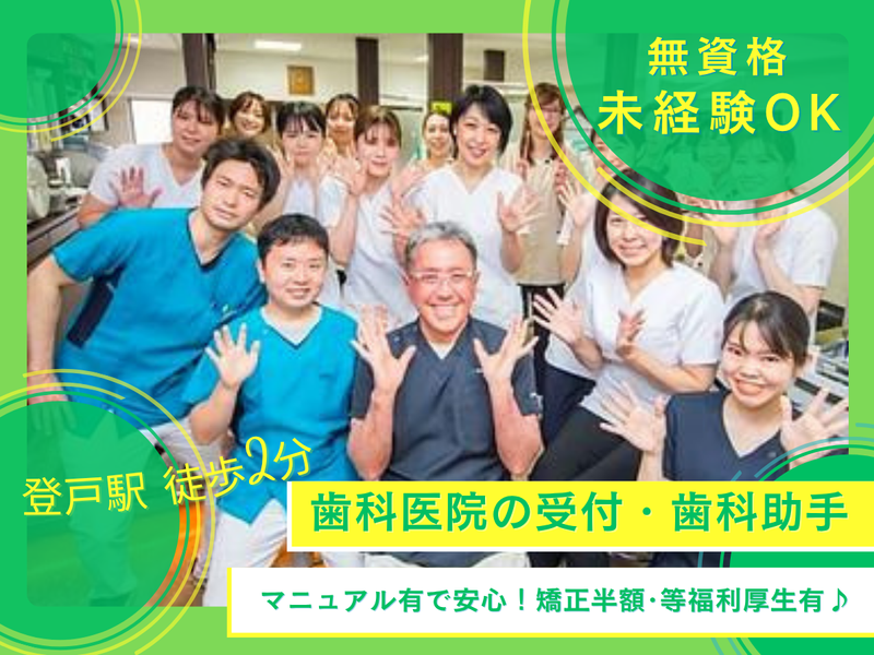 求めている人材 ■資格不要 ■大学生歓迎!! ✨新着求人✨ 歯科助手・受付のお仕事を \ 始めるチャンス! / クリニック受付スタッフや、 美容受付スタッフの経験が ある方はスキルを活かせます! 美容クリニック、 他の歯科クリニックなどからの 転職者、大歓迎! 医療事務スタッフ、 調剤薬局事務スタッフ、 病院事務スタッフとして 活躍していた方も在籍しています。 正社員・アルバイト・パート・ 主婦パートから転職した方も多数! 中高年も活躍中!  ̄ ̄ ̄ ̄ ̄ ̄ ̄ ̄ ̄ ̄ ̄ ̄ ̄ ̄ ̄ <下記当てはまる方にも!!> ✅一般事務や受付医療事務、 調剤薬局事務など事務の経験を 活かして働きたい方 ✅受付事務、美容皮膚科受付 など受付スタッフの経験を お持ちの方 ✅未経験スタートから 高収入を目指している方 ✅歯科助手としての経験を 積みたい方