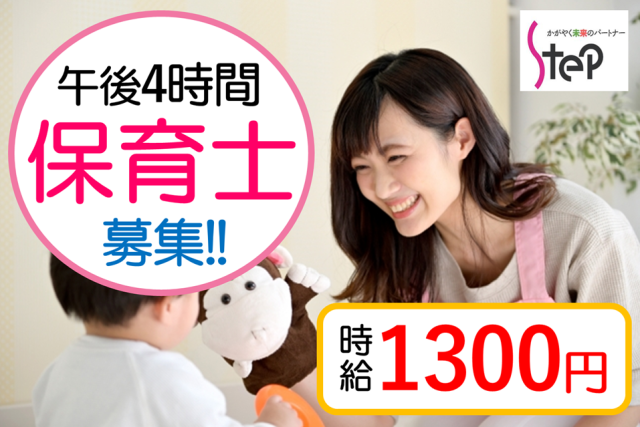 ◆月収目安10万円◆ 扶養内もOK / 資格を活かしてお仕事 / 短時間勤務 / 残業ナシ♪ 株式会社ステップグランドスタッフ 児童放課後デイの支援員 . ■案件NO,15471■お電話で案件番号をお伝えください! *:;;;:*:;;;:**:;;;:*:;;;:**:;;;:*:;;;:* 放課後デイサービスの 支援員の求人案件です♪ *:;;;:*:;;;:**:;;;:*:;;;:**:;;;:*:;;;:* ▼こんな施設です ・小学1年生~高校3年生が対象 ・平日13~17時開校 ・土曜,祝日,長期休暇中10~17時開校 ・古民家のような外観 芋堀りやみかん狩り、 公園あそびやプール遊び、 そのほか課外活動も たくさん行います☆ 子どもたちと一緒に元気に 遊んで楽しみましょう♪ 気さくなお人柄の施設長さんに 惹かれるように、スタッフの方も 前向きで明るい方が多いです♪ ____________ \ここがポイント!/ ・療育未経験OK ・午後からのお仕事 ・短時間勤務 ・扶養内相談OK ・残業なし スタッフの方は30代、40代を 中心に幅広い年齢層の方が 活躍中です! パートのような働き方が したい方にもオススメ☆ ____________ 午前中はプライベートの時間に♪ 午後からのお仕事なので、 午前中に家事や買い物などを すませて、ゆとりを持って 仕事をすることができますよ☆ ____________ 施設への見学時も同行します☆ 働く上で伝えておきたいこと、 時間の相談などなど ご自身では伝えにくいことも コーディネーターが伝えますので 見学時も安心です♪ 1人で悩まなくても大丈夫! 保育士としての経験がある コーディネーターが あなたのお仕事開始まで 精一杯サポートします!