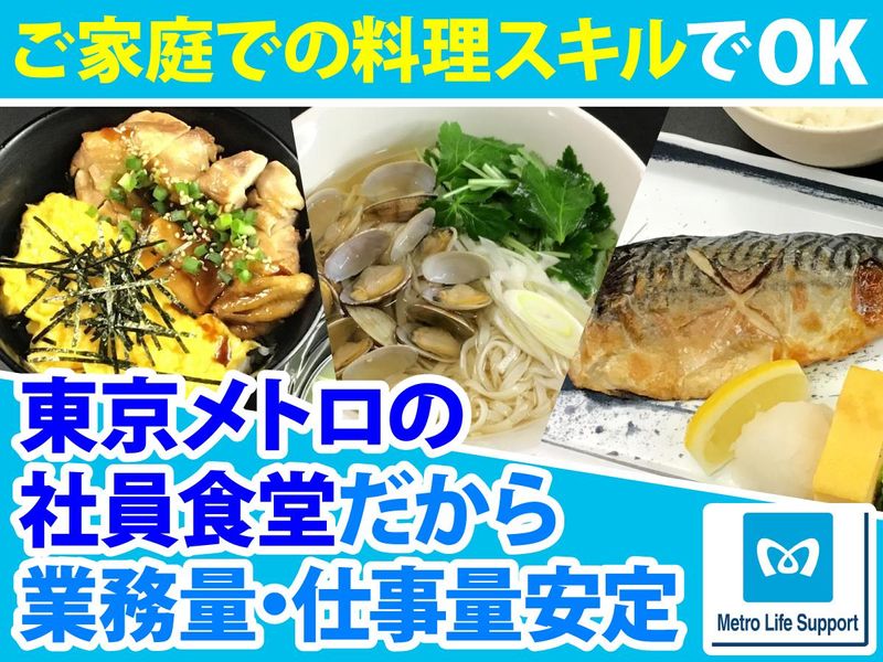職場環境 東京メトロの社員さん専用食堂なので毎日の業務量も安定! 突然忙しく・・・なんてことはないのでご安心ください! 近所にお住まいの主婦(夫)さんや20代のスタッフ多数活躍中! 駅やスーパーも近く、仕事帰りに夕飯の買い出しもできちゃいます♪