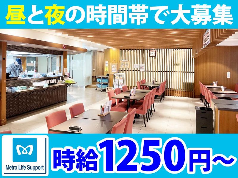 仕事内容 社員食堂内にて、昼間の調理業務と、夜間のホール業務をそれぞれお任せします! ✦ ランチタイムの調理の仕事 ✦ …………………………………… ・オーダーに合わせた調理 ・簡単な調理補助 ・洗い物 など ◎食洗機があるから洗い物がラクラク! ✦ 9:00~15:00のスケジュール例 ✦ 9:00~11:30▶仕込み・サラダバーのセッティング・OPEN準備 11:30~▶提供開始 13:30~▶ラストオーダー・片付け 14:00~▶翌日のランチ仕込み 15:00▶終了 ✦ ディナータイムのホールの仕事 ✦ ………………………………………… ・お客様のご案内 ・料理の提供 ・ テーブルの片付け など ◎タッチパネル注文だから接客もスムーズです! ✦ ランチタイムはこんな方におすすめ ✦ ……………………………………………… ランチタイムの時間は「9:00〜15:00」の時間帯です!家事や育児の合間に働けるので、スキマ時間を有効活用したい方におすすめです!主婦さんが活躍しています! ✦ ディナータイムはこんな方におすすめ ✦ ………………………………………………… ディナータイムの時間は「16:00~22:00」の時間帯です!学校が終えてから働く学生スタッフ活躍中!テスト期間を考慮したりと、学業と両立しながら勤務できる環境があります! ✦ランチも ディナーでも働きたい方には ✦ ………………………………………………… ランチタイムとディナータイムの両方とも働きたい!そんな方にはしっかり稼げるようにシフトを組んでいきます!フリーターさんやWワークをしたい方におすすめです! ✦ 落ち着いた雰囲気が魅力です! ✦ ………………………………………… 東京メトロの社員専用食堂のため、賑やかというよりは、落ち着いた雰囲気のお店です! そのため、スタッフたちも余裕を持って働けるのが、当店で働きやすいと感じていただけるポイントだと思います! ✦ 現在活躍中の仲間 ✦ …………………………… 20代のスタッフ活躍中!学生さんから主婦(夫)さんまで、幅広い世代のスタッフが在籍しています! 年齢関係なく皆さん仲が良く、アットホームな雰囲気の職場です♪ ✦ 大手ならではの好待遇 ✦ ………………………………… └ アルバイトも昇給あり! └ 誕生日休暇や有給休暇もあり! └ 交通費全額支給♪ ✦ シフト柔軟に対応します ✦ …………………………………… ■ 学業と両立する学生さん 学校行事やテスト期間も考慮OK!短時間でも働けるから学業と両立しやすい♪ ■ 子育ての落ち着いた主婦(夫)さん 土日休みなので家庭との両立もバッチリ!週や曜日によって早出・遅出も相談乗ります!ちょっとしたお小遣い稼ぎも大歓迎! ■ フリーターさん ガッツリ稼ぎたい方からWワークで働く方まで幅広く活躍中★「このくらい稼ぎたい!」などお気軽にご相談ください♪ それぞれのライフスタイルに合わせて柔軟に対応します! ・・・・・・・・・・・・・・・・・・・・・・・・・・・・・・・・ バイトデビューも大歓迎! 少しでも興味を持ってくださった方、 ご応募お待ちしております!