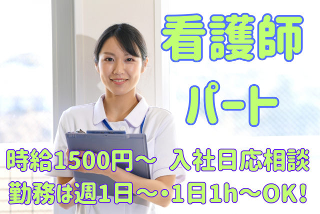 看護師 パート 時給1500円~ 経験者は給与優遇 入社日応相談 勤務は週1日~・1日1h~OK!