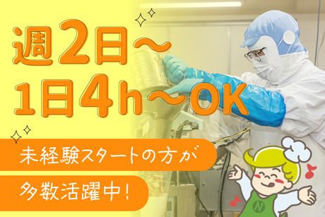勤務時間 週2日~1日4h~OK 7:00~20:00の間でシフト制 <シフト例> (1)7:00~11:00 (2)10:00~19:00(休憩60分) (3)11:00~20:00(休憩60分) (4)16:00~20:00 など 短時間・フルタイムどちらも選択可能です! 朝の7:00~/8:00~もしくは 夕方の16:00~勤務できる方歓迎! まずはお気軽にご相談ください。 ※現在勤務されている方も、 ご家庭の事情に合わせた働き方をされています! ※未経験者・初めての食品工場勤務の方歓迎! ※土日祝やGW・お盆・お正月の大型連休に出勤可能な方歓迎! ※Wワーク可! (他社と合計して週40h以内の場合のみ)
