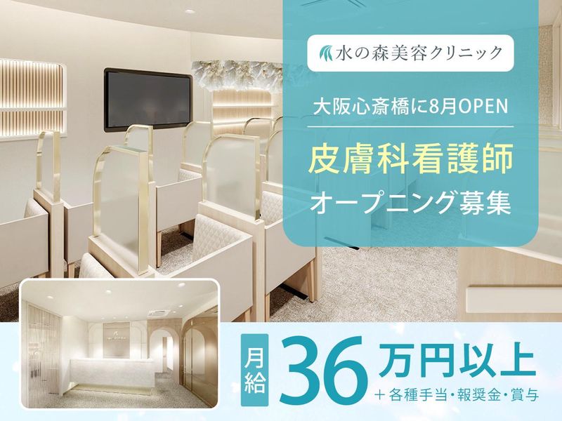 職場環境 「利益主義」ではなく「患者様中心主義」の考えを大切にしている水の森美容クリニック。 その姿勢がお客様から信頼され、この環境下でも順調に拡大を進め、新院開院となりました。 心斎橋院は当クリニック3院目の「皮膚科併設クリニック」としてOPENします。