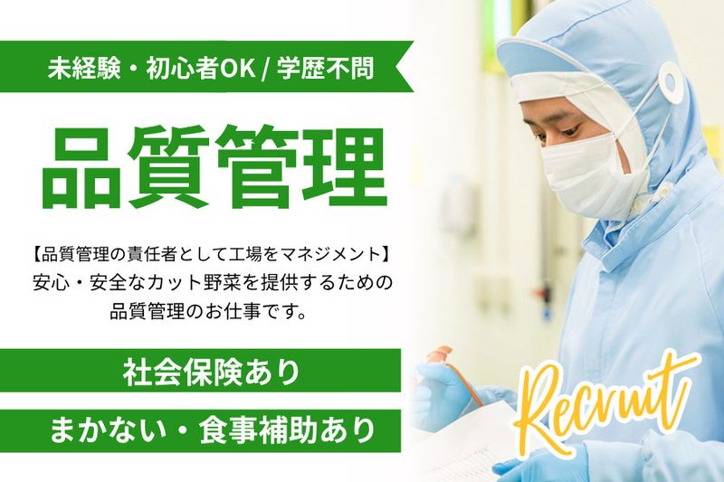 【仕事内容】 お仕事内容 【品質管理の責任者として工場をマネジメント】 安心・安全なカット野菜を提供するための品質管理のお仕事です。 ~具体的仕事内容~ ■細菌検査 ■工場の衛生や工程の管理 ■従業員への衛生教育・指導 ■品質管理マニュアルや掲示物の作成 ■商品の規格書の作成(e-BASE・MerQurius・そうけんくん等) ■商品クレームやトラブル発生時の対応(原因調査・報告書作成・再発防止対策) ■取引先監査の対応 ■食品安全マネジメントシステム(FSSC22000)の維持・運用 等 ー 【埼玉フーズの魅力ポイント】 ー ◆選べる週休2日制! ◎ワークライフバランスを大切にする企業です! ◎年間休日は110日!条件によっては週休3日も可能です。 ◆キャリアアップも期待できます! ◎リーダー、ライン長、工場長・・・と、キャリアアップが可能です! ◎前向きに頑張るあなたを全力で応援します! 【埼玉フーズについて】 弊社は、”食品を通して社会に貢献したい”という願いをもとに、1978年の創業から現在に至るまで、多くの方の「安心・安全・美味しい」を支えてきました。カット野菜については、1991年から製造業務を始めており、30年を超える実績と経験を持っています。 私たちの扱う商品は、一年中需要が絶えません。365日稼働しているため、それぞれがシフト制で働きます。福利厚生も充実しているので、長く働くことができる環境です。 《やりがいと社会貢献がどちらも満たせる!》 私たちの仕事は、カット野菜の製造を通じて多くの家庭に安心・安全を届けるだけでなく野菜の食品ロスも防ぎます。30年以上にわたって多くのお客様に届けてきた「安心・安全・美味・健康」を、私たちと一緒に届け続けませんか? まだまだ一緒に働いてくれる仲間を募集中です!ぜひ、あなたからのご応募をお待ちしております。
