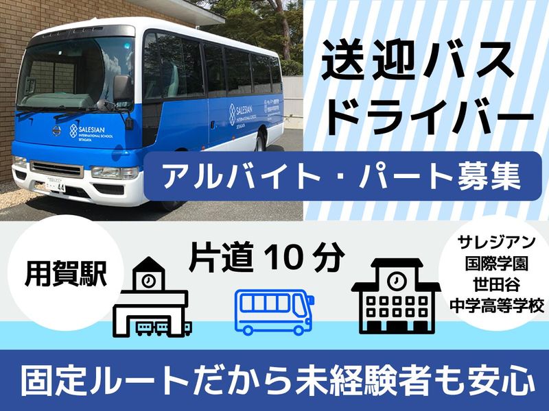 仕事内容 ✨用賀駅⇔学園間の送迎バスドライバー✨ ⭐第二種大型運転免許必須 ⭐第二種大型運転免許があれば経験不問 ⭐月曜日~土曜日運行 ✅用賀駅⇔学園間の固定ルート(10分)! ✅週2~3日OK!週4日以上もOK! ✅勤務日数、時間帯応相談! ✅待機室完備! ✅40代・50代・60代も活躍中! ✨メール応募も歓迎✨ メールアドレス: recruit@sd-support.co.jp ╭━━━━━━━━━━━━╮ 具体的な仕事内容は… ╰━━━v━━━━━━━━╯ 「サレジアン国際学園世田谷中学高等学校」 に通う生徒さんたちの送迎をお任せします。 その他、車両チェック等の業務もあります。 ✨送迎コース:用賀駅⇔学園(片道10分) ◎登校便(6:45~8:45)※2時間 ※2026年3月からは6:00~9:30の3時間半 ◎下校便(15:00~18:30)※3時間半 ※2026年3月からは15:00~19:00の4時間 ✨決まったコースの送迎です! └注意すべきこともすぐわかりますし、 慣れてくれば余裕を持って仕事に 取り組むことができます! ※給油や洗車、車内清掃もお任せします。 ※固定ルートなので退勤時間も安定します。 ╭━━━━━━━━━━━━╮ やりがいも働きやすさも◎ ╰━━━v━━━━━━━━╯ 学園に通う生徒たちの成長を見守り ながら、挨拶や感謝の言葉が何よりの やりがいに繋がるお仕事です。 スケジュールに沿って運行するため、 予定通りに業務を遂行しやすく、 メリハリをつけて働くことができます♪ ╭━━━━━━━━━━━━╮ 中高年・シニア活躍中! ╰━━━v━━━━━━━━╯ 40代・50代の中高年・ミドル世代が 多数活躍していただいております! 荷積みや荷下ろしといった力仕事は まったくありませんし、決まった 固定ルートなので、ご安心ください。 入社後は、OJT中心で運転技術や マナーなどの研修を行います。 慣れるまでは、会社全体でしっかりと サポートしますので、 ブランクのある方も 安心してスタートできる環境です♪