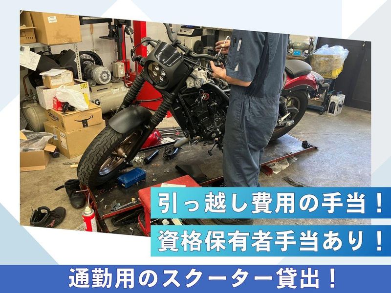 仕事内容 ✅バイク・自動車整備の実務経験者募集! ✅整備経験・保有資格をしっかり評価! ✅技術力の高い整備士が多数在籍中!! ✅月給+賞与年2回+決算賞与&昇給有! ✅引越し費用最大30万円補助あり(規定)! 【仕事内容】 バイクショップでの 整備業務全般をお任せします。 ★新車・中古車の整備が中心! ★整備の実務に集中できる環境です! ▽▲▽▲▽▲▽▲▽▲▽▲▽▲▽▲▽▲▽ 【ここがポイント❗】 ⏩整備経験をしっかり評価!  ̄ ̄ ̄ ̄ ̄ ̄ ̄ ̄ ̄ ̄ ̄ ̄ ̄ ̄ 過去の経験・整備実績を 細かくヒアリングし、給与に反映! 面接時に給与の説明がありますので、 気になることは何でも聞いてくださいね! ⏩ブランクからの復帰も歓迎!  ̄ ̄ ̄ ̄ ̄ ̄ ̄ ̄ ̄ ̄ ̄ ̄ ̄ ̄ ̄ もちろん、ブランクのある方も 大歓迎です! 安心して再スタートできるように しっかりフォローします✊ ⏩通勤サポート・引っ越し費用補助あり!  ̄ ̄ ̄ ̄ ̄ ̄ ̄ ̄ ̄ ̄ ̄ ̄ ̄ ̄ ̄ ̄ ̄ ̄ ̄ ̄ ★通勤用バイクがなくても心配不要! 125ccまでのスクーターを無料で 貸し出し可能なので快適に通勤できます◎ ★地方からの転職も応援! 引越し費用最大30万円まで補助(規定) 現在遠方にお住まいの方でも安心。 通勤圏内への引越し費用を 会社がサポートします。 新たなスタートを切るあなたを、 経済面でもしっかり応援します。