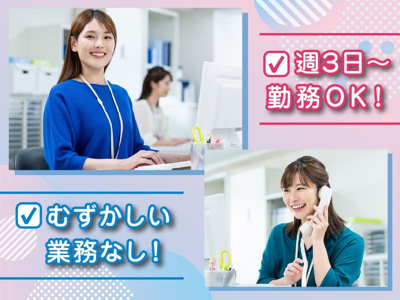 カンタン事務作業◎未経験歓迎!週3日~/送迎あり&車通勤可