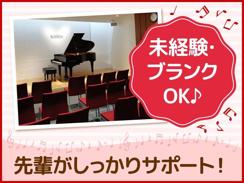 職場環境 30代~50代を中心に 幅広い年代が活躍中! ブランクからの復帰など 経験面で不安な方も大丈夫◎ 「ピアノが好き」 「クラシックが好き」という方が 楽しみながら働けるのはもちろん、 音大卒業など音楽の経験がある方も 知識を活かしながらお仕事できます♪ 喫煙所:なし(敷地内全て禁煙)