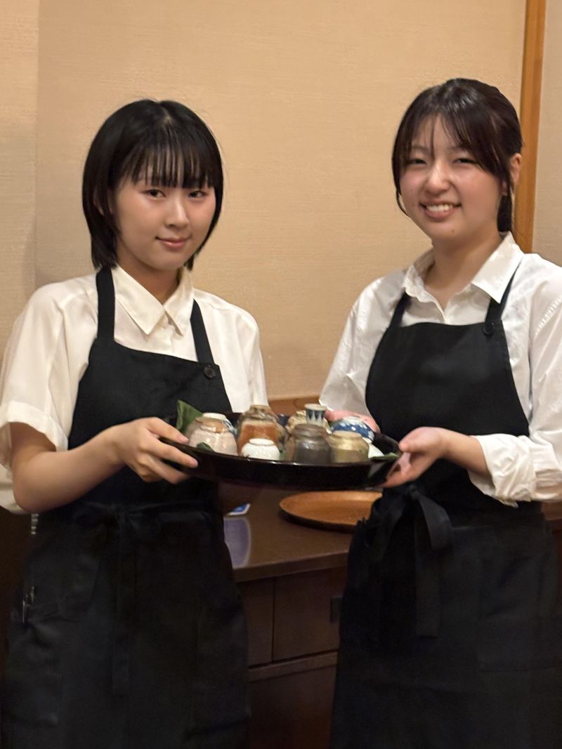 仕事内容 *落ち着いた雰囲気の日本料理屋さん *長期で活躍する学生多数! *女性staffがメインで活躍中☆ <お仕事内容> 接客、配膳、片付けなどホール業務を お願いします。 シフトには2人で入るので、フォロー体制も ばっちり! まずは席のご案内や台ふきなど簡単な ことから始めましょう♪ カウンターとテーブルで17席と広すぎず、 常連さんも多いので、落ち着いた雰囲気で お仕事できます! アルバイト、パートが初めての方も歓迎! 【雰囲気も定着率も◎】 春にはお花見に行ったり、早く終わった日は ご飯に連れて行ってもらう事もあって すごく楽しいんです! バイトが休みの日には家族を連れてお店に 食べに行ったり、卒業したスタッフも 帰省のたびにお店に来てくれたり、 今でも仲良し♪ 大学1年生から卒業まで長く続ける スタッフも多く、働きやすい雰囲気◎ by学生スタッフ 【まかない絶品】 手巻きずしに鯛のお頭までつく日も! 今日は何かのお祝い?と思ってしまうほど、 普通の日でも豪華なものが出たり(笑) 料理好きな人も大歓迎! まかないを作るついでに教えます◎ 親子丼はみんなが作れる得意料理☆