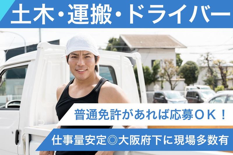 仕事内容 \大阪府下に現場多数!仕事量安定!/ 土木作業スタッフ&ドライバー業務 ╋━┳━━━━━━━━━━━━━━╋ ┃未┃✅1R寮完備(3食・お風呂付き) ┃経┃✅日払い・週払い対応可(規定) ┃験┃✅「次までの繋ぎ」短期もOK! ┃歓┃✅各種手当あり・髪型自由 ┃迎┃✅フリーター歓迎・学生活躍中 ╋━┻━━━━━━━━━━━━━━╋ ╭━━━━━━━╮ お仕事内容 ╰━━━━━━━╯ 大阪全域の工事現場で 土地の土砂・岩石を掘り取ったり、 基礎杭を打ったりする 土木・基礎工事に加え、 ドライバー業務もお任せします。 入社後、面倒見の良い先輩社員が "基本の基"から現場作業における 作業のコツなどを丁寧に指導します! ╭━━━━━━╮ 集合場所 ╰━━━━━━╯ 大阪府堺市堺区西湊町4-1-9(事務所) └(最寄り)南海本線「湊」駅~徒歩7分 └マイカー通勤OK! ╭━━━━╮ 現場 ╰━━━━╯ 大阪府下全域 ※事務所に集合、全員で現場へ移動します。