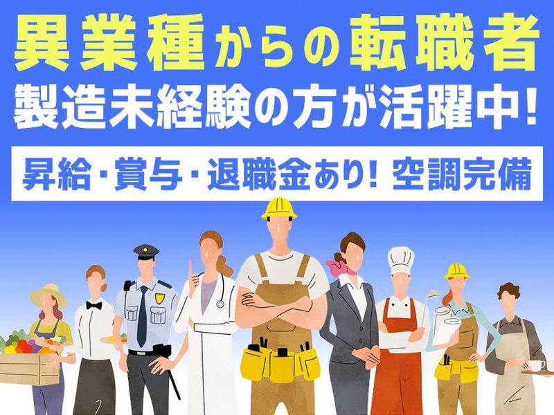 求めている人材 *ブランクOK *未経験者OK *経験者歓迎 *フリーター歓迎 *知識・経験不問 *学歴不問 *20代~50代の男女スタッフ活躍中 異業種からの転職者や製造業未経験の方が多数在籍しています! 経験不問なので未経験の方でもスタートできる体制です♪