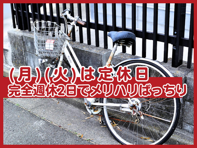 仕事内容 ||◤ 2026年4月にOPEN ◢|| \\SDGsに貢献٩( ఠఠ )و// ✮ ごみ処理センターでお仕事 ✮ ◃┄▸◂┄▹◃┄▸◂┄▹◃┄▸ ✅月給22~30万円! ✅(月)(火)はお休み! ✅7時間勤務の月給制 ◃┄▸◂┄▹◃┄▸◂┄▹◃┄▸ [仕事内容] 東部総合処理センターに 持ち込まれる粗大ごみの中には 自転車も多数あります。 パンクしているもの、 錆びついているもの、 引っ越しなどで不要になったもの… ですがその中にはまだまだ 利用できる部品もあるんです。 …………………………………………………… 【業務①】 お任せしたいのは 再生利用可能な自転車から 使える部品を回収すること。 そしてその部品を使って他の自転車を 修理・整備(組み立て)をすることです! 利用できなくなった 自転車が息を吹き返す! SDGsなやりがいがあります◎ 完成した自転車は市民の方へ無償提供。 あなたが修理・整備した自転車を 市民の方に喜んで利用していただけます! …………………………………………………… 【業務②】 市民の方が故障した自転車を 修理のために持ち込まれます。 専門工具は無償で貸し出し! 部品は無償提供をします! 基本的には持ち込まれた方に、 ご自身で修理いただきますが、 ご要望があればサポートをお願いします! …………………………………………………… 【業務③】 再生利用製品の自転車の 防犯登録の補助をお願いします! (防犯登録カードの記入など) ┏ ━━┅━━━━━━━━━┅━━ ┓ 「みやっこリサイクルパーク」は 西宮市東部総合処理センター 資源循環施設に 2026年4月新しく併設される 「環境学習施設」 ※愛称は市内小中学生の方を中心に 計195名の応募の中から選ばれました。 「みやっこ」は “西宮の子どもたち”という意味♪ 子どもたちや市民の方が ごみの行方やリサイクルについて 楽しく見学・体験・学習できる施設です! ┗ ━━┅━━━━━━━━━┅━━ ┛