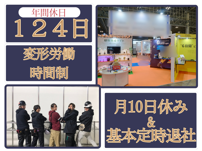 仕事内容 ✨チームで作り上げる達成感が大きい仕事 ✨未経験から制作・設営のプロを目指せる ✨展示会・イベント・コンサートなど多彩な現場に携われる 【お仕事内容】 *展示会・コンサート・各種イベント会場でのブース設営・施工 *イベント用ブースやステージの組み立て、設置作業 *システムパネル、木工造作、トラスなどの組み立て作業 *イベント終了後の撤去・原状回復作業 *付随する準備作業・現場サポート業務 現場は展示会やイベント、コンサート会場など多岐にわたります! 複数名のチームで動くため、役割分担をしながら作業を進めます◎ 最初は補助作業からスタートし、道具の名前や使い方♪ 現場の流れを少しずつ覚えていける環境です! 【このお仕事の魅力】 ✅幅広いイベントに関われる 展示会・イベント・コンサートなど、さまざまな現場を経験できるため、自然とスキルと対応力が身につきます☆彡 ✅未経験から技術が身につく システムパネル、木工、トラスなど、専門的な施工技術を基礎から学べます。将来的には制作の中心メンバーとして活躍可能です◎ ✅若手が活躍できる職場 20代~30代が中心で、溶け込みやすい雰囲気!年齢に関係なく活躍でき、成長スピードも早い環境です◎
