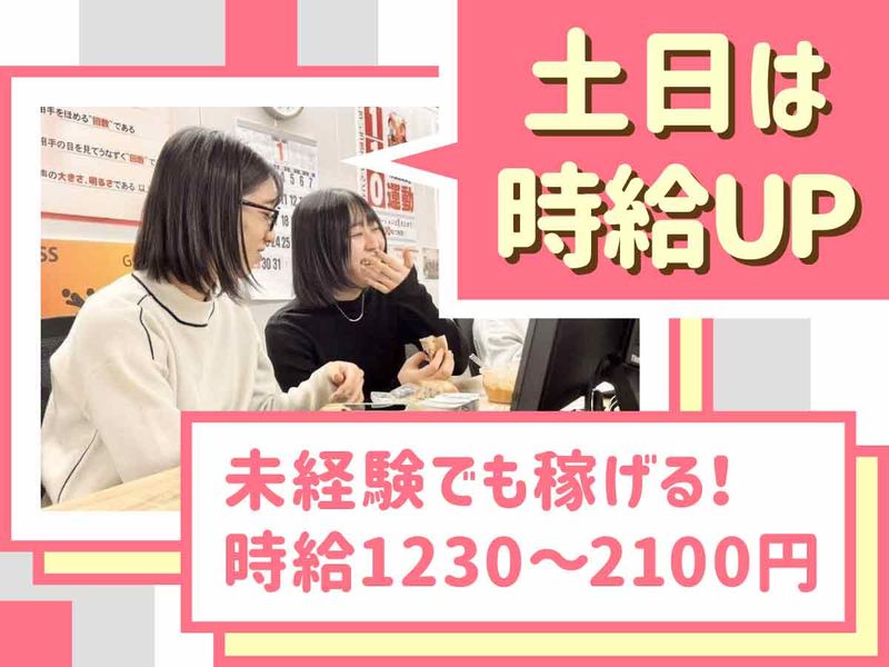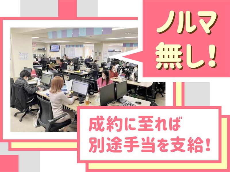 仕事内容 ✅ 未経験でも高時給1230円~2100円 ✅ 土日はさらに時給が100円アップ♪ ✅ 成約に至れば別途手当を支給 ✅ 週1日~&1日2h~でシフト自由 ✅ マニュアル完備なので安心です ✅ ノルマは一切ありません! ✅ 正社員登用の実績あり ================ ――――――――――― ✨こんな仕事です!✨ ――――――――――― コールセンターのスタッフとして、 セミナーに関する送付物の確認や アフターメンテナンスのご案内など お客様との電話応対をお願いします。 \未経験歓迎!マニュアル通りでOK/ 「コールセンターは初めてで不安…」 そんな方もご安心を!先輩スタッフが 基本から丁寧にお教えしますし、 最初はマニュアルに沿って回答すれば 問題なく仕事に慣れてゆくはずです。 \ノルマなし!特別手当あり♪/ 目先の数字に追われることなく、 落ち着いて仕事に取り組めます。 実績を給与に反映する会社です! 「コールセンターデビューしたい」 「スキルを活かして稼ぎたい」 どちらの方にもピッタリです。 ―――――――――――― ✨シフトの自由度は高め✨ ―――――――――――― 週1日以上の勤務でOK! 平日でも土日でも構いません。 9時から20時までの間の 1日2時間から入れるので、 家庭や学業や本業との両立ラクラク。 もちろん週5日のレギュラー勤務や フルタイムでの勤務は大歓迎です。 まずは一度ご相談ください。 ―――――――――――――― ✨こんな仲間たちがいます✨ ―――――――――――――― 当社では20代・30代の若手から 40代・50代のミドルまで 幅広い世代の男女が活躍中です。 ●Wワークのフリーターさん ●育児と両立中の主婦さん ●学校帰りの学生さん など、いろいろなスタッフが在籍。 人柄重視で採用していますから みんな気さくで親切な人ばかり! 仕事のアドバイスはもちろん、 休憩中は雑談で盛り上がるなど 誰とでも話しやすい環境です。 ――――――――――――――― ✨お試しで”仕事体験”も可能!✨ ――――――――――――――― 「思っていた雰囲気と違う・・・」 そんなミスマッチが起きないように 当社では面接する前でも職場内を 見学する事が出来ます。 どのような環境で働いていて どういった流れで電話をしてるのか 事前に見学を通して直接見る事ができます。 アルバイトと社員の距離感も非常に近く 和気藹々とした雰囲気がきっと伝わるかも? 他にも質問などがあれば、 担当者がしっかりとお答えしますので 不安も一気に解消されます! 「これなら自分でもできそう♪」 と思ったらその場で面接に進んでもOK。 ぜひ、お申し込みくださいませ。