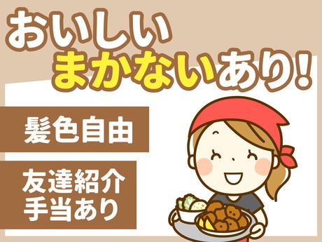 資格 ・未経験OK! ・調理経験がある方、歓迎! ・扶養内・ブランクある方も歓迎! ・WワークもOK <歓迎条件> ・飲食での経験がある方 ・人と話すことが好きな方 ・料理に興味がある方 <こんな方にピッタリ> □授業終わりにそのままバイトしたい □同年代が多い職場がいい □就活に活きる接客スキルを身につけたい □子どもが学校に行っている間だけ働きたい □夕飯の準備に間に合う時間で働きたい □久しぶりのパート復帰で不安がある <こんなタイプの方は特に活躍しています> ・明るく挨拶ができる方 ・チームで働くのが好きな方 ・「ありがとう」と言われる仕事がしたい方 ・忙しい時間帯も前向きに楽しめる方 経験よりも 「人柄」と「やる気」を重視しています。