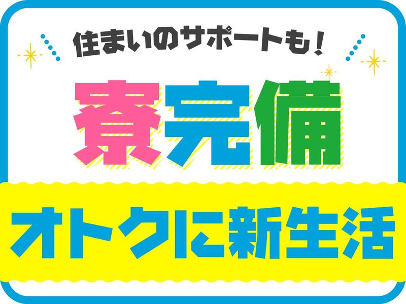 求めている人材 資格・経験は一切不問! 未経験からスタートしたスタッフが多数活躍中です。 *学歴・職歴・資格不問 *工場勤務・製造業が初めての方も歓迎 *異業種からの転職OK(接客・販売・事務など) *コツコツ作業・モノづくりが好きな方にピッタリ *マニュアル通りの作業が中心なので安心 ★寮完備で新生活を応援★ *住まいを同時に決めたい方 *一人暮らしを始めたい方 *県外からの応募・Uターン・Iターン希望の方も歓迎 ※入社後は丁寧な研修があるため、特別なスキルは必要ありません。