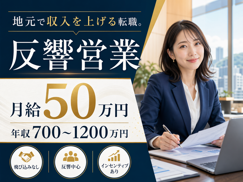 求めている人材 ■ 20代・30代が最前線で活躍中! 年齢や社歴に関わらず、実績と論理的な思考力を正当に評価する環境のため、20代〜30代が組織の中核として高収入を実現しています。 【必須要件】 ・何らかの営業経験(期間・業界・商材は一切不問) ・相手の状況を聞きながら柔軟に提案できる方 ・成果に対して正当な評価を受けたい方 【歓迎要件】 ・BtoC、BtoB問わず、無形商材の提案営業経験 ・地域で腰を据えて働きながら高収入を目指したい方 ・契約後のフォローまで丁寧に関わる営業が得意な方 【ミスマッチとなる適性】 ・自身の目標達成や収入アップへの意欲が低い方 ・マニュアルや指示がないと自律的に行動できない方 ・論理的な課題解決よりも、単なる御用聞きを好む方 ※選考においては、これまでの役職や業界経験よりも、物事に論理的に向き合えるか、成果へのこだわりを持っているかを重視して判断いたします。
