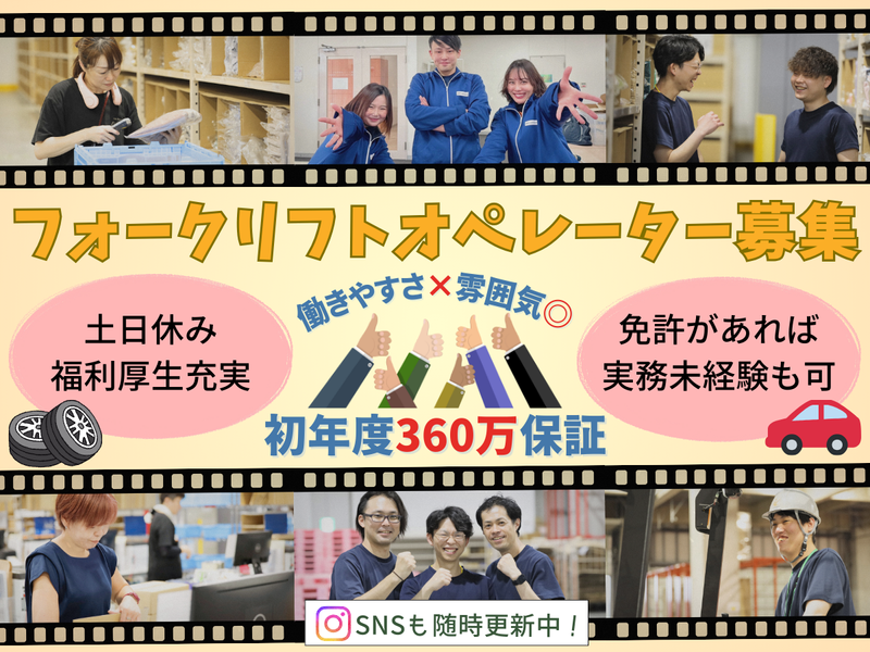 仕事内容 実務未経験OK◎人間関係の良好さが自慢✨ \\フォークリフトオペレーター募集// 加須営業所は新しくて綺麗な清潔感のある倉庫! 快適な環境で、気持ちよく働けるのがおすすめポイントです!✨ ⏰初年度360万円保証!社員全員の給料UPを実現に成功! ⏰毎年1回、希望の勤務地を選択OK!地元でも、新天地でも◎ ⏰現場の声をしっかり反映!働きやすい環境づくりを常に実行! ⏰働きやすさ◎年休115日×土日休み+夜勤なし! ⏰有給取得率100%!ワークライフバランス抜群◎ ≪▼SNSも発信中!≫ ================= ⏬インスタグラム随時更新中 『@recruit_info_ivy』で検索♪ ⏬noteにて社員インタビュー掲載中 『ivy_company』で検索♪ ⏬会社説明動画Youtubeにて配信中 『@recruit_infoivy』で検索♪ ================= 【✅仕事内容】 タイヤやホイールなどを扱う倉庫で、フォークリフトを使った作業を中心に入荷から出荷まで担当していただきます! ■ピッキング(出荷指示に従って商品の取り出し) ■仕分け・検品・梱包 ■フォークリフトによる荷物の移動・積み替え ■出荷準備、倉庫内整理 など 動きのある仕事が多く、チームで協力しながら進めていきます! ✨ステップアップできる環境! ≪Mさん/現場でのキャリアアップ例≫ ▼2016年2月:アルバイト入社 ▼2017年2月:正社員へ昇格 ▼2019年6月:主任へ昇格 ▼2022年11月:係長へ昇格 ▼2024年6月:課長へ昇格 現場経験を積み重ねながら着実にステップアップ。 努力がキャリア・役職・給与にしっかり反映される環境です✨ 【✅社員インタビュー】 *入社1年目/Tさん/20代* Q:前職での経験を教えて下さい! A: 高校卒業後、空港の貨物地区でフォークリフトを使用し、国内外の貨物を丁寧に扱う仕事をしていました。 作業の流れを学びながら新人指導も任されるようになり、責任を持って働く経験ができました。 Q:アイビーカンパニーを選んだ理由は? A: ホームページやSNSから職場の雰囲気が良いと感じ、ここなら安心して働けると思いました。 前職のフォークリフト経験も活かせる上、新しい環境に挑戦して自分のスキルをさらに伸ばしたいと思い、入社を決めました。 Q:入社後にギャップを感じた部分はありますか? A: 想像より忙しい日もありますが、その分チームで協力し合う場面が多く、一体感を強く感じました。 お互いにフォローできる環境が整っているので、前向きに仕事に取り組めています。 Q:こんな方にピッタリ! A: コツコツと丁寧に作業できる方に向いていると思います。 集中して仕事を進めつつも、気軽に相談しやすい雰囲気があるので、自分のペースを大切にしながら働けます。