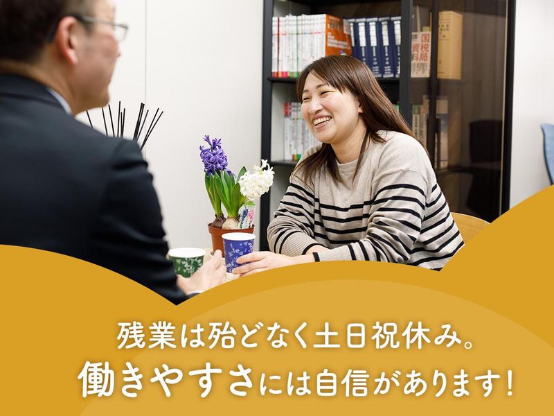 職場環境 【子育てと両立】 土日祝休みで家族との予定もばっちり! 夏季・年末年始休暇も充実です。 有給も月2~3日取得OK!さらに子育て特別休暇で 運動会や参観日など学校行事も優先できます。 お子さんの急な発熱なども柔軟に対応いたします♪