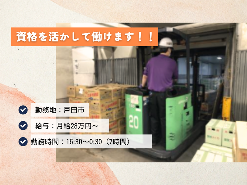 仕事内容 倉庫内でのフォークリフトを使った作業が中心です。 フォークリフト免許をお持ちの方は歓迎! また、フォークリフト免許がない方は、入社後に会社負担で取得できます。 資格を取りながら、長く安定して働ける環境です。 パレットに積まれた野菜をフォークリフトで移動したり、 トラックへ積み込む作業が主なお仕事です。 工場や倉庫内作業の経験が なくても大丈夫!未経験歓迎です! かんたんな作業なので、 どなたでもスグに慣れることができます。 チームで助け合いながら、 スムーズな作業を目指します。 ⭐ 資格取得支援制度あり!!  ̄V ̄ ̄ ̄ ̄ ̄ ̄ ̄ ̄ ̄ ̄ ̄ ̄ ̄ 「働きたいけど免許がない…」 という方も大丈夫! 資格取得支援制度制度を利用して、 未経験からフォークリフト作業に チャレンジできます。 資格・経験がない方も しっかりサポートするので、 安心してご応募ください❗❗ ★〓★〓★〓★〓★〓★〓★〓★〓★ 新しい環境で不安なく スタートできるように、 分からない事は近くの先輩スタッフに なんでも聞いてください。 たくさんの方のご応募を お待ちしております!! ★〓★〓★〓★〓★〓★〓★〓★〓★