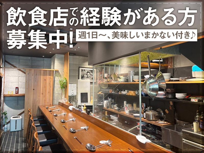 仕事内容 \ 飲食店での経験がある方募集中!! / カウンター8席*店内が見渡せる広さ! 肩肘張らず働ける雰囲気のお店です* 【お任せするお仕事】 ◆お客様のご案内 …席への案合、オーダー伺いなど ◆ドリンク作り …ドリンク作りと簡単な調理補助を お願いします。 ◆テーブルの片付け ◆洗い物 <お昼の勤務を希望される方は> 仕込み作業をお願いします。 野菜を切ったり、食材の下準備をしたり テーブルのセッティング、店内清掃などです。 - マスターとのマンツーマンでお店を営業しています。 研修の1ヶ月間でお店のやり方などを覚えてもらい 2ヶ月目からはお店の一員として働いていただきます。 分からないことがあれば、スグに教えてもらえます◎ 料理の知識やお酒の種類に詳しい必要はありませんが 飲食店での経験があり、接客ができる方を募集中です! お仕事ができるようになったら お給与などでしっかりと還元します!! 長い方だと6年以上続けているスタッフも◎ カウンターのみ・常連のお客様も多く 落ち着いて働いていただけます。 コース料理だけでなくアラカルト(単品)のお料理も 提供しています。 サービスの経験だけでなく、料理の知識もつきます! 「食べるのが好き!」「料理が好き!」 「もっと知識をつけたい」という方も大歓迎◎