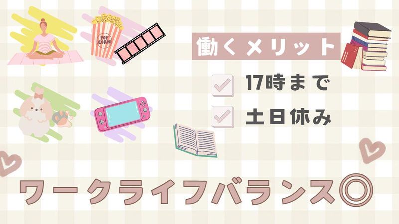 17時迄のお仕事だからワークライフバランス重視の方にオスス
