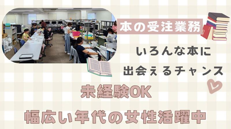 仕事内容 簡単なPCの操作 伝票整理、チェック作業 電話対応が中心のデスクワークなので 未経験でも大丈夫☆ 更に土曜・日曜・祝日は完全休み、 急なお休みも大丈夫なので 子育て中の方も安心して働けます! <具体的にお任せするのは…> ☑書店様からの受注・問い合わせなどの対応 ☑お客様からの受注 ☑PC入力 ☑簡単な事務作業になります。 丁寧に時間をかけて研修を行うため、 未経験の方でも安心してスタートできます。 電話対応の基礎からシステムの使い方まで、 先輩スタッフがしっかりサポートします。 研修後も「わからない!」という時は、 すぐに周りのスタッフに質問でき、 一人で抱え込まずに働ける体制が整っています。 土日はしっかりお休みで、 ノルマや営業架電・残業もなし。 自分の時間を大切にしながら働けます。 女性スタッフが多く活躍しており、 明るく話しやすい雰囲気があるので 初めての方でも自然と馴染んでいただけると思います。 .。.:.。.:.。.:.。..。.:.。.:.。.:.。..。.:.。.:.。.:.。..。.:. 現在幅広い年代の女性スタッフが活躍中! 先輩も未経験スタートが多数! 「事務経験がないから不安…」という方も 始めやすい環境である事を約束します♪ コツコツと仕事ができる方を歓迎します。 積極的に学ぶ意欲がある方は大歓迎♪ .。.:.。.:.。.:.。..。.:.。.:.。.:.。..。.:.。.:.。.:.。..。.:. 平日のみ&17時までのお仕事なので 公私共に充実させたい方にもオススメ♪ 「帰りに買い出しができるのが助かる」 「土日休みだから家族と過ごせる!」 等スタッフからも嬉しい声が上がってます♪ *時間要相談 ワークライフバランスがしっかり取れる当社 だから一人ひとりのモチベーションも高い★ 働きやすい環境で貴方もスタートしませんか?