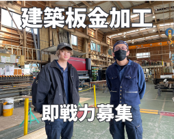 求めている人材 \加工製造の経験者募集!/ ※要普通自動車免許(AT限定可)※ 至急時などに車での納品、 配達をお願いすることがあるため。 他の資格は不要!必要なのは経験のみ! ★建築板金加工、製造の経験者を募集! ★その他の加工製造の 現場経験者も歓迎します! 当工場での製造は「特注品」がメイン。 金属板が、形を持った製品になる… 一つの工程だけでなく すべての過程に触れる「モノづくり」を 楽しめる方をお待ちしています◎