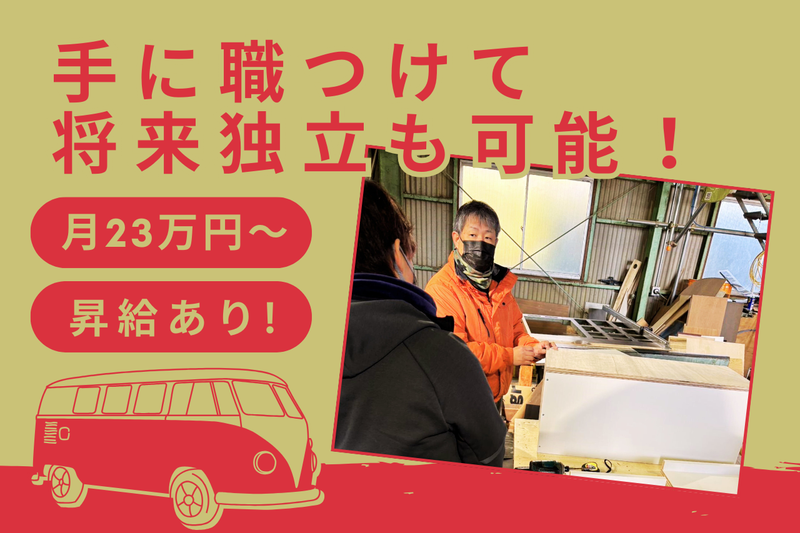 仕事内容 \レアなモノづくりの仕事!/ キャンピングカー製作スタッフ募集 ⭐この仕事のポイント ━━━━━━━━━━━━━━ ✅未経験からスタートOK ✅月給23万円〜42万円 ✅完全週休2日制 ✅車好き・DIY好き歓迎 ✅キャンピングカーを作るレアな仕事 ✅残業月平均20時間以内 ***** 当社はワンボックスや軽バンをベースにした キャンピングカーや特装車両を 製作している会社です。 大量生産の工場とは違い お客様の希望に合わせて 1台ずつカスタム製作しています。 仕事通じてものづくりのスキルアップができます。 「モノづくりが好き」 「DIYや工具を使うのが好き」 そんな方なら 未経験からでも活躍できます。 入社後は 工具の使い方から 先輩スタッフが丁寧に教えるので 安心してスタートできます。 ⭐具体的な仕事内容 ━━━━━━━━━━━━━━ ■車両内装の組立 ベッド・収納などの取付 ■部品の取付作業 車両設備やパーツの設置 ■部品加工・調整 車両に合わせたカスタム作業 ■電装システム組立 室内で利用する電気設備の取付 ■新規車両の製作サポート 作業はチームで行い 一台ずつ仕上げていきます。 完成したキャンピングカーを 目の前で見たときの達成感は この仕事ならではの魅力です。 「手に職をつけたい」 「車に関わる仕事がしたい」 「将来は独立したい」 「資格取得支援で電気工事士の資格を取りたい」 そんな方にピッタリの仕事です。 笠間市をはじめ石岡市、筑西市、水戸市、小美玉市、 那珂市、桜川市、茨城町、城里町から通勤便利です。