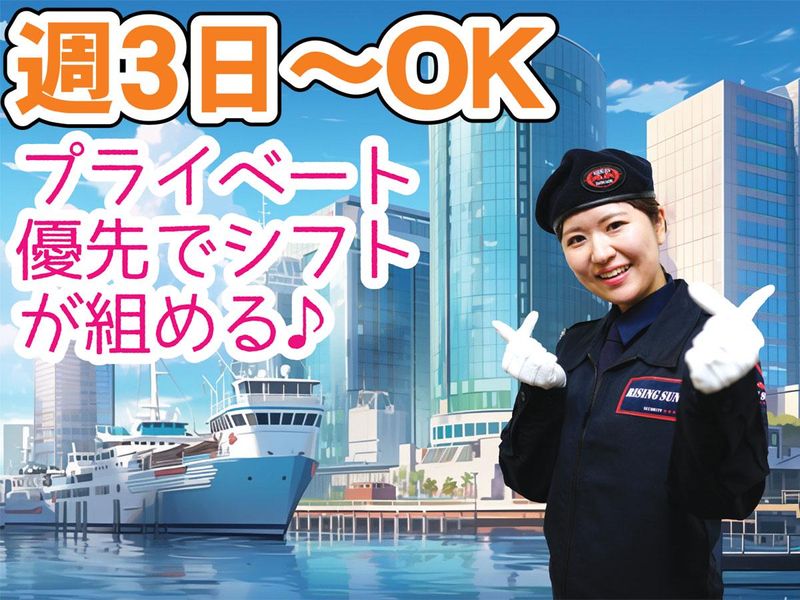 仕事内容 ―――――――――――――――――――― 神戸港内にあるドックの出入管理スタッフ! 業務拡大につき、大増員募集!! 当務日収2万5313円! 夜勤日収1万2563円! 日勤日収1万2750! の高収入ワーク! 当務ならわずか月13日で 月収34万688円も稼げます!! たくさん稼ぎたい人は、 夜勤を月27日勤務で36万3938円!! シフトは週3日からOK! あなたのスタイルに合わせた働き方で 稼いでください♪ ―――――――――――――――――――― 【お仕事内容】 神戸港内にあるドックでの出入管理業務をお 任せします。具体的には、許可パスの受渡し など、とってもシンプルなお仕事です。 ※力仕事など一切ありません。 \船好きの人にはたまらないお仕事!/ 船が好きな方、大歓迎! 神戸港に入る沢山の船が間近で見られる! めったに見れないめ珍しい船も!? \未経験者大歓迎!/ ライジングサンは業界・職種未経験の方でも 安心して警備員デビューできる警備会社! 入社後に、今まで何千人もの未経験者を 現場デビューに導いた、基礎から学べる充実 した研修があります。 「新しい仕事で自分の力を試したい!」 「この仕事で生計を立てて生活したい!」 「セカンドキャリアとして働き始めたい!」 など、どんな方にもマッチした働き方が可能 なライジングサンで警備員デビューをしませ んか! \週3日から勤務OK/ シフトは働きたい日に働け、休みたい日に 休める自己申告シフト制! プライベートを犠牲にすること無く働ける 職場環境です。 \入社祝金5万円支給!/ 勤務給与の他に、入社祝金が貰える! \面接は1回のみ/ 当社は人柄重視の採用基準! 学歴や前職など一切気にしません。 99%の方が未経験からスタート! \ライジングサンはこんな会社/ 成田・羽田・関空・中部国際・北九州空港 など各地の空港や官公庁施設、銀行、大手 企業、有名商業施設、ホテル、各国要人が 集まる国際会議に、大規模イベントなど 様々なシーンの警備実績をもつ当社。 昨今、ますます安全へのニーズが高まる中、 そのニーズに応えるべく、隊員を大増員し ています。景気や社会情勢に左右されない ので安定した収入が得られ長く安心して働 ける会社です。