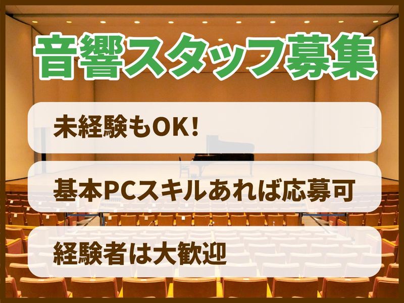 仕事内容 宮前区にある公共ホールでの 舞台音響管理業務をお任せします。 <具体的には…> ・施設利用者との打合せ ・備品管理 ・その他付随業務 など ―――――――――――――――― 株式会社サイオーはこんな会社! ―――――――――――――――― 1970年に埼玉県で創業した 総合ビル管理会社です。 清掃、設備、警備をはじめ、 施設を安心・安全・快適に保つための 幅広いサービスを提供するとともに、 常に最先端の技術を追求してきました。 庁舎、劇場ホール、スポーツ施設、 学校といった公共施設から、 オフィスビル、研究所、工場などの 民間施設まで。 現在、350棟を超える施設の 維持管理・運営をお任せいただいている 当社では、技術の進歩を見据え、 ともにチャレンジしてくれる 幅広い業種のスタッフを募集しています。 ビル管理にイノベーションを! 先端技術の導入と人材育成に 挑戦し続けています。