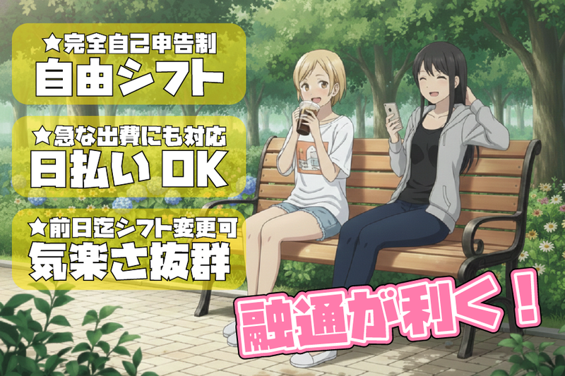 【保険制度】 雇用保険、労災保険、健康保険、厚生年金 待遇・福利厚生 【福利厚生】 <福利厚生> ◆昇給 ◆正社員登用有 ◆各種手当 ◆髪型自由 ◆資格取得支援制度 ◆日払いOK/規定有 ◆交通費全額支給 ◆作業道具貸出制度 ◆講習、研修制度 【働きたい時にすぐ働けて即稼げる♪】 前日連絡で翌日出勤OK! 「急に明日の予定が なくなってしまった」 「今月は金欠でピンチ」 などの時にも即勤務OK! 日払い制度で すぐにお給料もGET! シフトは週1日~なので 「他の仕事との掛け持ち」や 「次の仕事が決まるまでの 短期でガッツリ週5日」など 融通が利きます♪ 無理なく少ない日数も ガッツリシフトも叶うので 20代・30代・40代・50代・60代 と幅広い年代が活躍中です。