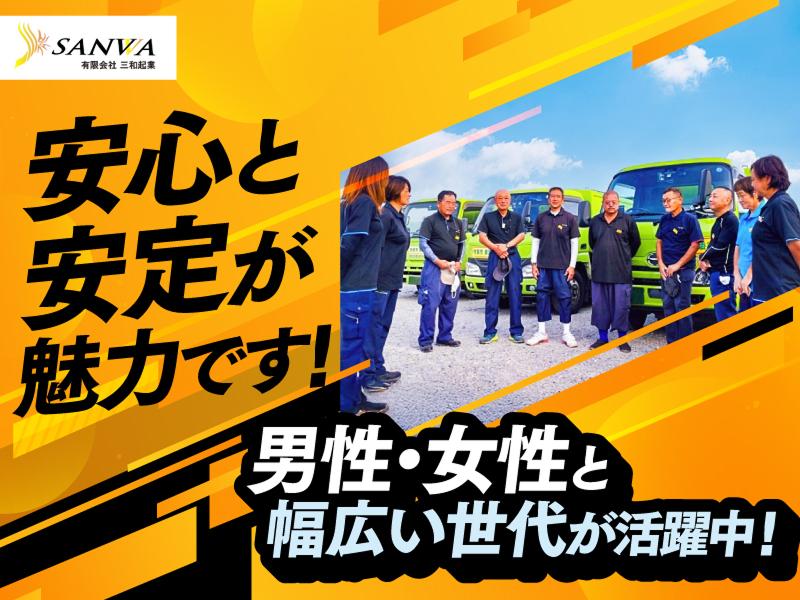 アピールポイント: ⭐⭐⭐⭐⭐⭐⭐⭐⭐⭐⭐ 地域トップクラスの清潔な車両で 働けるのも当社の魅力です! ⭐⭐⭐⭐⭐⭐⭐⭐⭐⭐⭐ ☝ 有限会社三和起業について 昭和51年設立から市原市に根ざし、 家庭ごみの収集・運搬に特化した企業です。 市原市から委託を受けた公共事業です。 ☝ 「働きやすい」から「長く働ける」 残業ほぼなし!週に数回、終わりじまいもあるので、 趣味や家族の時間も大切にできます◎ ☝ 「未経験」でも安心して働ける 免許があれば、未経験でもOK! 入社後はしっかりサポートするので 安心してスタートできます^^