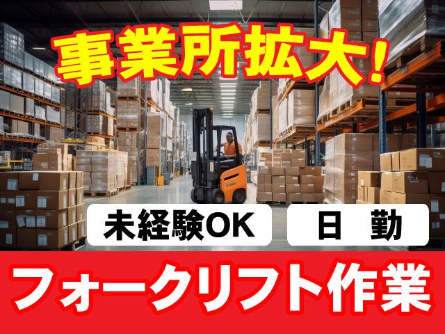 仕事内容 事業所拡大!増員募集! 物流倉庫内でのフォークリフト作業員を募集! リーチフォークリフトを使用した作業です。 コツコツ作業をするのが好きな方にもオススメ。 ▼おすすめポイント▼ 〇フォークリフト免許あれば未経験OK 〇長期休暇あり! 〇夜勤なしの日勤業務 〇30代や40代がメインに活躍中 〇有給休暇取得率100%! 〇安定したお仕事で長く安心して働けます。 需要の安定している物流倉庫でのお仕事! 正社員のフォークリフトオペレーターとして 一緒に働きませんか! <仕事内容> お願いするのは、物流倉庫内での リーチフォークリフトによるピッキング作業。 取り扱っているのはベッドやソファなどの家具になります。 フォークリフトオペレーターとして リーチフォークを使用した入出庫、ピッキング作業をお願いします。 倉庫内にある家具製品を ピッキングして、トラック手前の出荷場所までの 移動させることがメイン業務です。 指定場所間の移動の繰り返しになりますので、 もくもくと作業したい方にピッタリ。 経験者も未経験者も大歓迎! シンプルなお仕事なので倉庫内作業が初めての方も大丈夫です。 倉庫内も整理され、非常に作業しやすい現場になっています。 スピードより正確さ重視の現場なので、自分のペースで仕事ができます。 わからないことがあっても先輩が丁寧に教えてくれるので安心して働けます。 <長期休暇もしっかり> 当社は有給休暇取得率100%! 日勤業務で長期休暇もしっかりあります。 自分の時間を大切にしたい方、 家族の時間を大切にした方、 プライベートとの両立もバッチリ! 夜勤がないので安定した収入も 欲しいけれど自分や家族との時間も 大切にしたい、という方におすすめ! <こんな経験・得意を活かせる> ・倉庫内フォークリフト作業 ・倉庫内軽作業 ・倉庫内ピッキング作業 ・フォークリフト作業が得意 <勤務環境> 初心者から経験者まで幅広い方が活躍しています。 丁寧な研修とサポートがある為、安心してスタートができます。 ご応募お待ちしています。