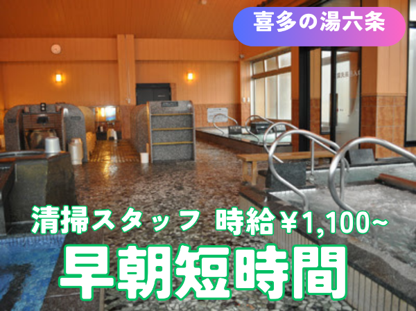 岐阜市 瑞穂市 岐南町 六条温泉 喜多の湯/早朝の短時間☆学生~60代活躍中☆【アルバイト・パート/隙間時間を有効活用♪】 清掃スタッフ 岐阜県岐阜市六条江東3丁目3-18 アルバイト・パート 求人の特徴 週 2・3 日から OK 週 3・4 日から OK 週 4 日以上 OK 40 代も応募可 50 代も応募可 60 代も応募可 70 代も応募可 バイトデビュー歓迎 中卒歓迎 主婦・主夫歓迎 学歴不問 未経験者歓迎 経験浅め歓迎 高卒歓迎 履歴書不要 職場見学可 電話で応募・問い合わせ 服装自由 髪型・髪色自由 車通勤 OK 業務内容 ー――――――――――――――――――――― ①未経験スタートが90%以上!清掃マニュアル完備で安心♪ ②20代~70代まで幅広い年齢層の方が活躍中です ③Wワークや扶養内OK!短時間勤務かつ簡単な作業のお仕事です ―――――――――――――――――――――― ●業務内容 六条温泉 喜多の湯にて浴場やフロアーの清掃業務をおまかせします。 朝礼後、10名で分担し清掃を行います。 具体的には… ・浴槽、床、ガラスなどの浴場内の清掃 ・サウナ室や化粧台など脱衣場の清掃 ・玄関、ホール内の清掃 ・ロッカーなど備品の清掃 など 清掃後は清掃用具の片づけを行い、最終チェック・終礼(報告事項の共有)を行い、業務終了となります。 ●先輩の声 私は清掃のお仕事は未経験だったのですが、周りのスタッフがとても優しく丁寧にサポートしてくれました。重い物の持ち運びが無いので体への負担も少なく女性や年配の方も安心です。 週末のみの勤務や、家事や育児と両立しながら働いたり、ライフスタイルに合わせて勤務できるので、助かっています。 職種 清掃スタッフ 雇用形態 アルバイト・パート 勤務体系 シフト制 リモートワーク制度 リモートワークなし
