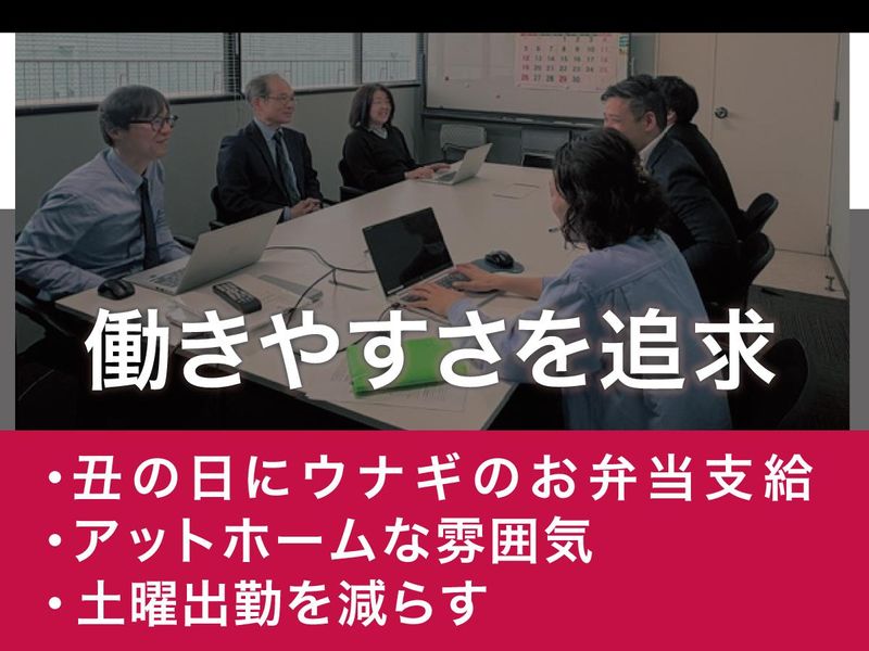 職場環境 少人数で顔が見える関係性。職人気質ながらも穏やかで優しい人が多く、落ち着いて仕事に集中できる環境です。 喫煙所:喫煙所あり(屋外)