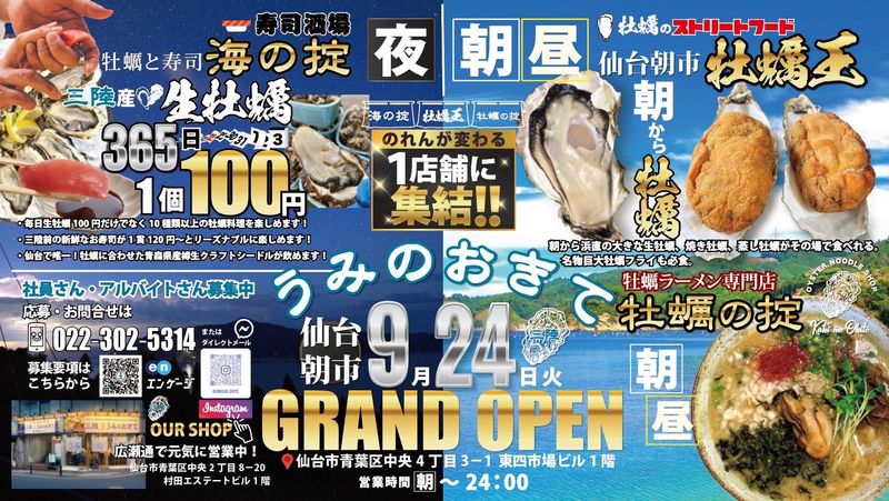 仕事内容 仙台駅から徒歩3分! 人気居酒屋店新規募集になります! 朝8〜25時の幅広い時間帯のスタッフを募集中! [お仕事内容] ・接客業務 ・オーダー取り(卓上QRオーダー利用) ・料理の配膳 ・清掃業務 ・その他 [GOODポイント] ・アルバイトでも頑張りに応じて昇給あり! (1,100〜1,200円スタッフ多数) ・10名前後のスタッフが同時出勤! ・駅から3分の好立地! ・自分の生活に合わせた時間帯で勤務可! ・美味しい賄い毎日無料! ・長期休み可! ・週一から勤務可! ・即日採用! 募集内容 ・朝8〜17時のランチスタッフ ・17〜25時のディナースタッフ ※この時間の間で1日3時間からシフト提出 現在10〜60代の幅広い年代のスタッフが働いてます!