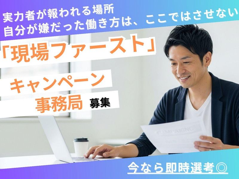 求めている人材 【必須要件】 法人営業経験5年ほど 広告代理店・セールスプロモーション会社などへの営業経験 もしくはキャンペーン等、事務局経験 【歓迎要件】 「結果」重視の方 キャンペーン事務局または広告代理店の営業経験者(目安:5年以上) BtoB営業経験があり、顧客から信頼されている方 BPOや物流業界での営業経験者 代理店などで独立経験があり、現在はリスクなく安定した環境で働きたいと考えている方 自分の裁量で自由に働きたい方 組織の遅さや非効率な会議、日報などに不満を感じている方。 独立志向の方